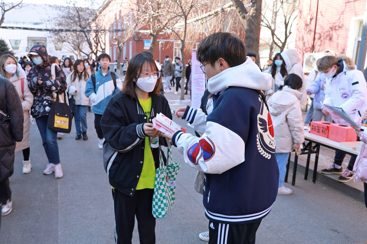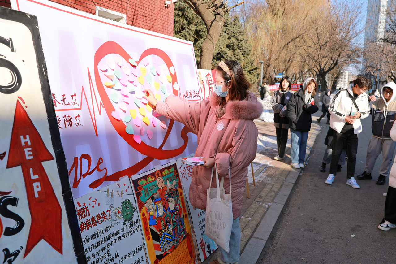 活动中,学校在南、北两院食堂前的道路两侧摆满了各学院同学手绘的“防艾抗艾”宣传板,中标今年中国性病艾滋病防治协会高校防艾基金的学院、学生社团在现场开展了多种形式的互动宣传活动。大学生志愿者们为路过的老师和同学发放了宣传材料和象征着“关心 希望 支持”的红丝带,邀请他们在“爱心墙”上贴上心愿贴,并在南院广场开展了“艾的回答”“艾的声音”“艾的抱抱”“艾的感应”等“防艾”游戏大比拼活动。(审核:王海义,吴琮)