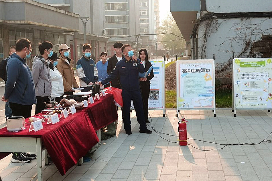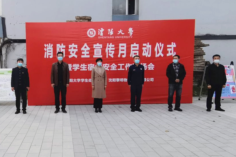 11月5日下午,学生工作部与保卫处联合在北院6号宿舍楼旁小广场举行消防安全宣传月启动仪式暨学生宿舍安全工作现场会。副校长唐雁出席仪式。学生处、保卫处负责人、大东区消防应急救援大队有关同志、沈阳黎明物业管理有限公司从业人员以及各学院辅导员和学生代表等200余人参加仪式。